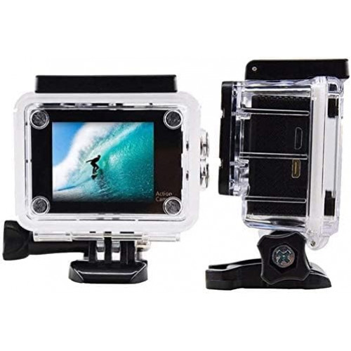Resistente al agua hasta 30 metros: adecuado para diseño impermeable en el mundo submarino. Resistente al agua hasta 60 metros. Kit de accesorios de instalación de batería de cargador: batería de 900 MA, un gran número de accesorios gratis. Accesorios multifuncionales que te permiten montar la cámara en cascos, bicicletas, muñecas, etc.