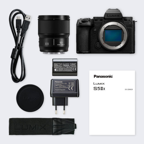 Panasonic LUMIX DC-S5M2XCE Cámara Marco Completo Sin Espejo, Lente LUMIX S 50 mm F1.8, Grabación 4K 60P y 6K 30P, Pantalla Abatible, Wi-Fi, AF Híbrido De Fase, IS Activo, Batería DMW-BLK22.