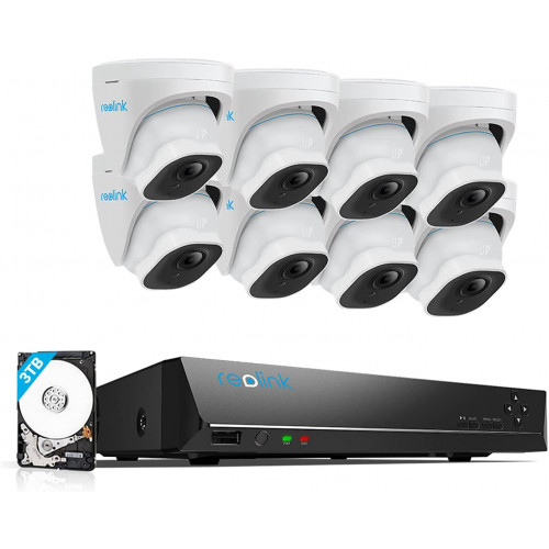 Reolink 4K 16CH PoE Sistema de Cámara Vigilancia, 8pcs 8MP Detección de Personas/Vehículos Cámaras IP PoE Exterior, 4K NVR con 3TB HDD 24/7 Grabación Vision Nocturna Agudio, RLK16-820D8-A