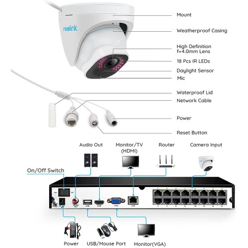 - 4K Ultra HD Videos: Reolink 8MP 3840 × 2160 cámara PoE ofrece casi cuatro veces la claridad de 1080p. Nuestro kit de cámara proporciona a los usuarios una visualización vívida, incluso cuando se hace un zoom digital. Se ha eliminado cualquier defecto o distorsión que haya encontrado antes, asegurándole una vista de la más alta calidad de sus alrededores