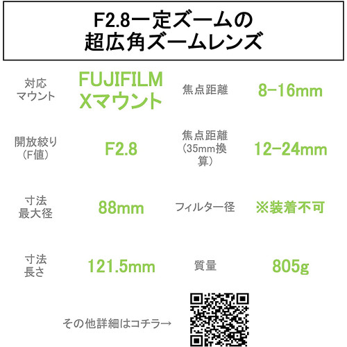 - Código de Producto: Fujifilm 8-16 - Objetivo XF 8-16 mm F2.8 R LM WR