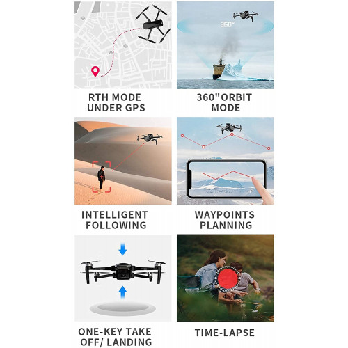 Tamaño del cuadricóptero: 182 X 255 X 74 mm ( desplegado) 170 X 108 X 74 mm (plegado)