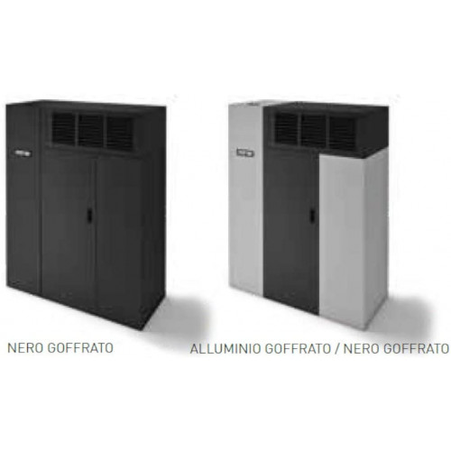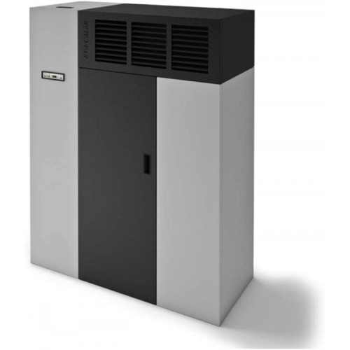 El aire caliente se introduce en el ambiente a través de una única boca de salida. Dispone de depósito de pellets de 40 kg. A bordo una nueva electrónica programable que permite el funcionamiento en 5 potencias y un innovador sistema de modulación preestablecido. Los 1200 m3/h de aire caliente que usted liberó la hacen adecuada para calentar ambientes de tamaño medio como talleres, pequeños invernaderos, locales públicos.