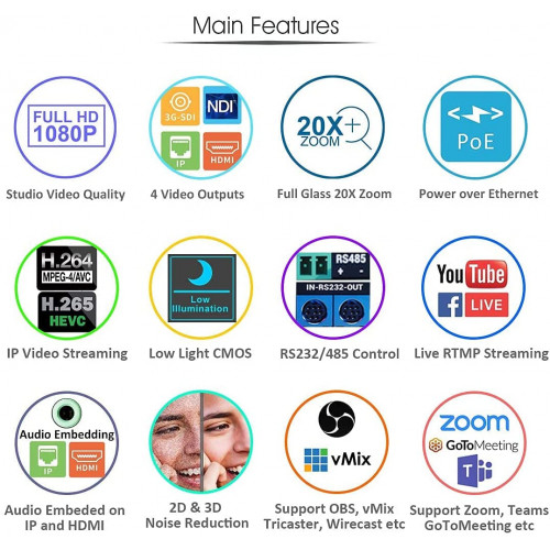 • Código de Producto: 20X-NDI Cámara de conferencia y difusión Full HD