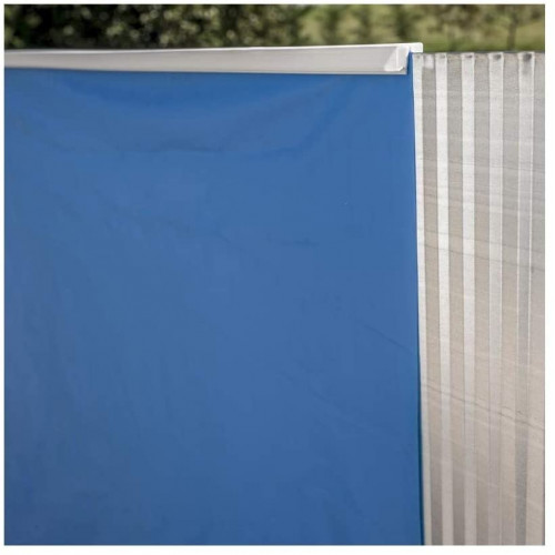 - Con tapiz protector de polietileno, perfilería de acero y protectores de inyección; incorpora un liner de PVC azul 40/100 con tratamiento anti-UV