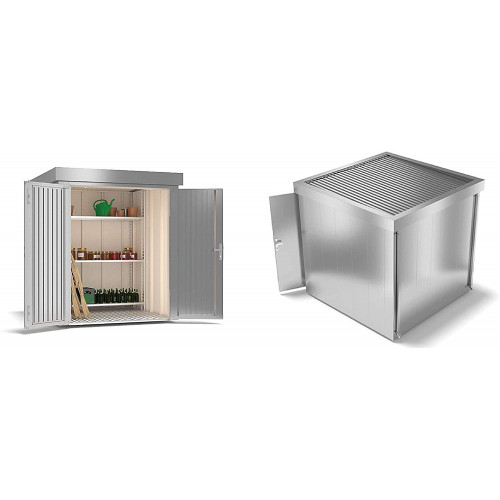 ILESTO Cobertizo de Jardín John-Boy - Almacenamiento Exterior de Acero Impermeable con Techo - Cerradura, Estantería (190 x 118 x 214 cm, Gris Metal!)