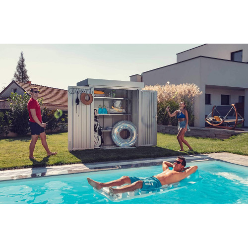- Caseta de jardín moderna de metal, pequeña, ideal para guardar herramientas de jardín y como garaje para bicicletas/garaje de chapa o cobertizo de herramientas