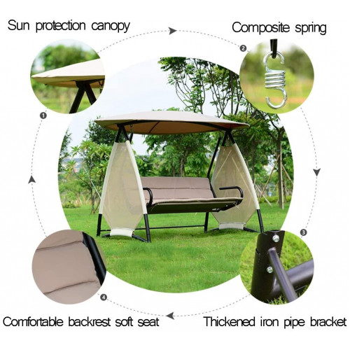 Columpio Balancín Jardín Banco de 3 plazas para Columpios de jardín con Techo Desmontable