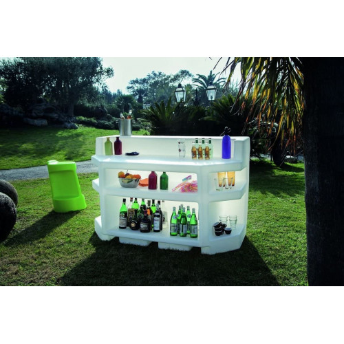 La barra «Zanzibar» del fabricante de muebles de diseño italiano Modum es un verdadero punto de atracción para tu fiesta. La barra está iluminada con LED y crea una atmósfera impresionante. Apto para uso en interiores y exteriores. También es posible combinar varios de estos elementos y crear una gran barra. Para ello se pueden combinar elementos de las series "Zanzibar" y "Pemba".