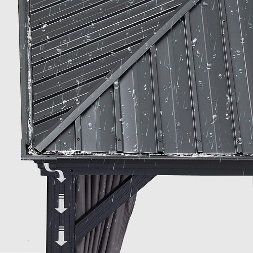 - DISEÑO ESPECIAL: El diseño del canalón permite que el agua de lluvia fluya desde el borde del marco superior hacia el poste y luego hacia el suelo.