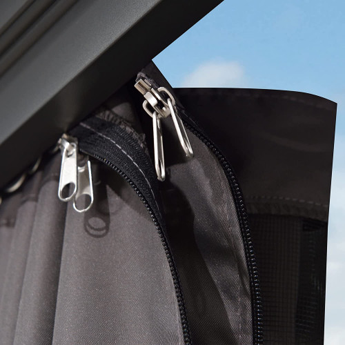 - APARIENCIA ATRACTIVA: El techo impermeable, las cortinas removibles y el mosquitero se pueden ajustar por separado usando un riel doble, lo que brinda un espacio de privacidad totalmente protegido, pero al mismo tiempo brinda suficiente circulación de aire y visibilidad.