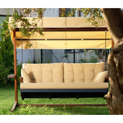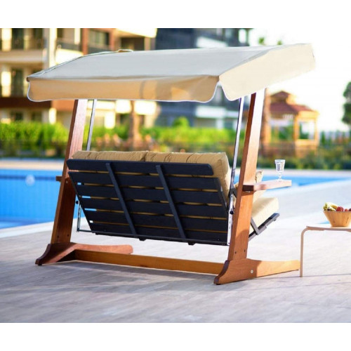 Casa Padrino Columpio de Hollywood de Lujo Beige/marrón - Columpio de jardín Moderno Resistente a la Intemperie con toldo para el Sol - Columpio de Terraza de Jardín - Muebles de Hotel