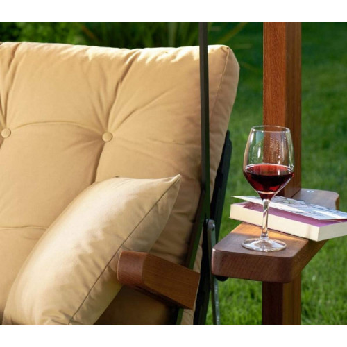 • Material: madera maciza de iroko tropical, madera de alerce, metal, espuma de poliéster, tela