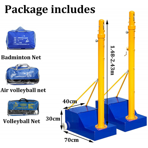 • 【Seguro y estable】 La base del soporte de la red de voleibol se puede llenar con grava y cemento para aumentar la estabilidad del soporte de la red de voleibol.