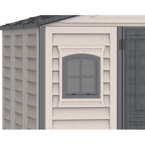 Duramax Woodbridge II - Cobertizo de jardín con Kit de Base de Metal, 2 Ventanas fijas, Adobe/Gris Oscuro
