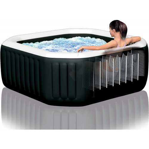 Intex Whirlpool Pure SPA Octagon Bubble - Sistema de Agua Salada y Chorro de Agua Salada, Color Negro