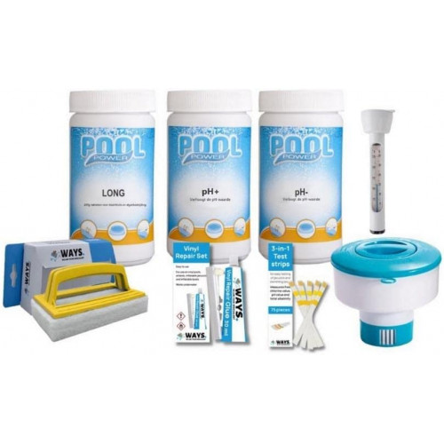 Con este conjunto tendrás todo lo necesario para tu piscina de una sola vez para un mantenimiento óptimo de tu piscina.