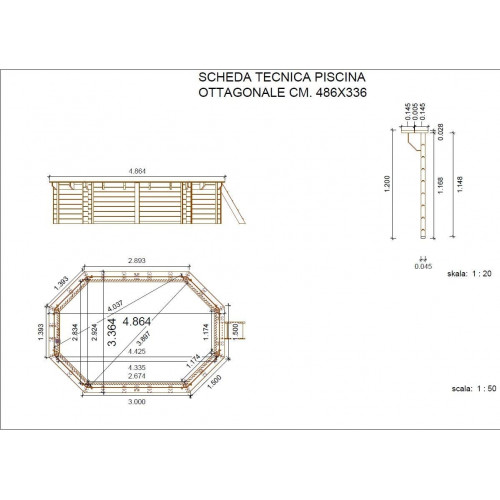 Piscina octogonal de madera impregnada diámetro 486 x 336 x 120 cm