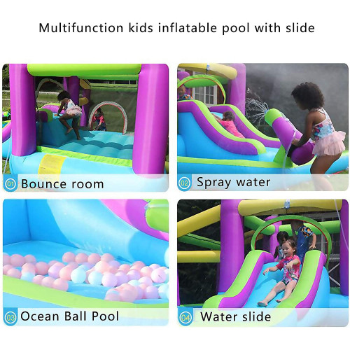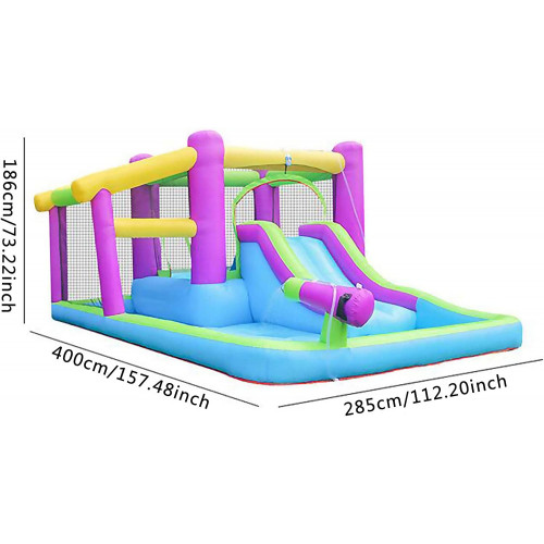 Se acerca el verano, ¿quieres refrescarte todo el día? Nuestra piscina hinchable te puede ayudar, puedes pasar un agradable día fresquito en familia o con amigos, ¡no lo dudes! Gran regalo de verano para sus hijos, están listos para compartir un momento íntimo con un amigo de la familia. ➤ Detalles del producto: Material: lona de PVC y tela Oxford 420D Tamaño: 400 * 285 * 186 cm (13,1 ʹ × 9,35 ʹ × 6,1 ʹ) Capacidad: 1-3 niñosEdad aplicable: 3-8 añosVentilador (incluido): 450 vatios Accesorios: bolsa de mano, clavos de plástico, manual de instrucciones, película de reparación, soplador Inflado y desinflado: fácil de instalar y quitar en 1-2 minutos Función del producto: El producto tiene las funciones de saltar, deslizarse, taladrar, saltar, etc. Características: El diseño inflable Fácil de plegar y almacenar➤ Precauciones de uso en piscinas:1. Cuando usa el producto, se puede usar durante aproximadamente 15 minutos después del inflado para garantizar la seguridad. No utilice ningún producto que tenga fugas o esté dañado2. Antes de usar el producto, retire los objetos afilados o dañinos del área de uso para evitar pérdidas innecesarias3. Cuando se usa, se requiere la tutela y la guía del tutor.4. El tiempo máximo de uso del ventilador no puede exceder las 10 horas➤ Nota:1. Tenga en cuenta que habrá una pequeña diferencia de color debido a los diferentes monitores.2.