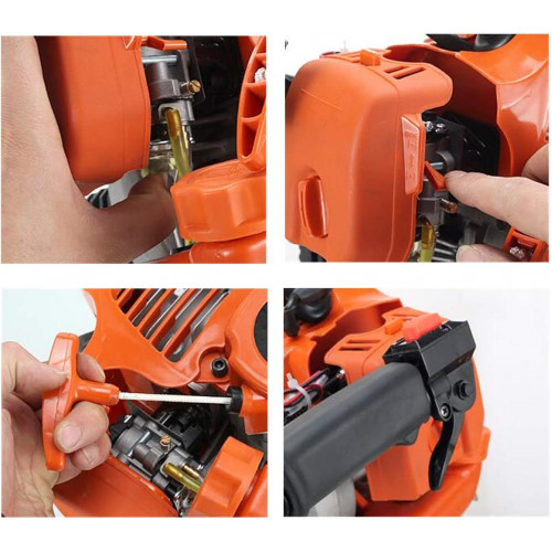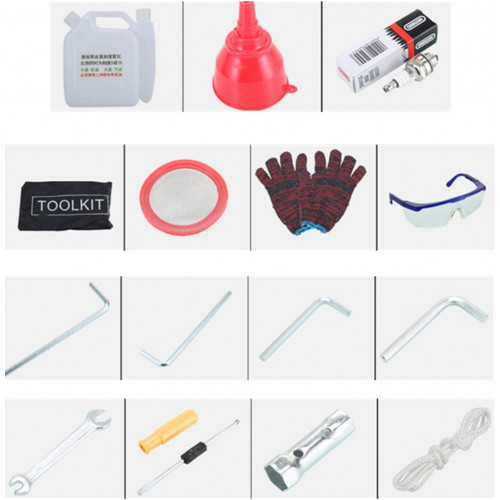 Parámetro técnico: Desplazamiento: 52 cc. Potencia: 1900 W. Frecuencia de impacto: 1500 BPM. Relación de combustible: 25:1 (gasolina: aceite de motor de dos tiempos). Capacidad del depósito de combustible: 1,3 L. Velocidad de rotación: 6500 rpm. Energía de impacto: 20-55 J. Peso neto: 21 kg. Peso: 50 kg. El juego incluye: 1 taladro de roca de gasolina. 5 palas. 3 cabezales de taladro. 1 placa de tapón. Juego de accesorios Característica 1. Alta potencia de 1900 W, sin llama, resistencia a altas temperaturas. 2. La operación de inicio de inercia de resorte de cuerda es simple y conveniente. 3. Mango de silicona antideslizante que absorbe los golpes para un uso más seguro. 4. Engranajes internos de acero manganeso de alta resistencia con buen rendimiento. 5. Ampliamente utilizado en la instalación de hidroelectricidad, demolición de hormigón, demolición de pared, cantera, corte de raíces y trasplante, apisonamiento de grava y otros trabajos de perforación.