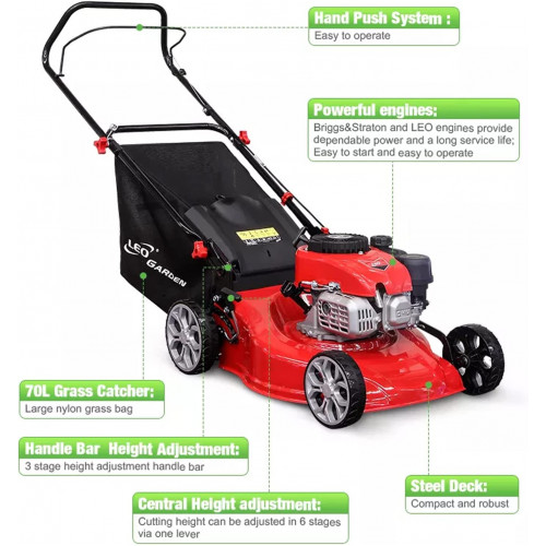 Gas de cortacésped de césped con bolsas, herramientas de jardín de jardín 4 accidente cerebrovascular 173cc 5.5hp motor de gasolina césped, 3 en 1 cortadora de césped con 5 alturas de corte ajustables[Clase de eficiencia energética A]