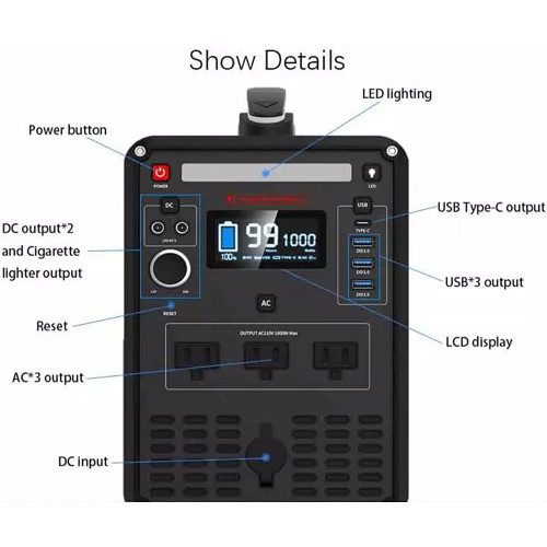• [Potencia]: con la notable capacidad de 350 000 mAh y un potente inversor de 1000 W, esta central eléctrica puede alimentar el 99 % de los dispositivos domésticos, lo que le brinda confianza en cualquier emergencia.