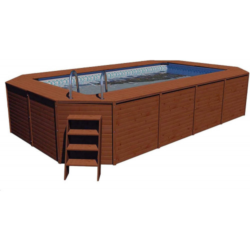La madera con la que se fabrica la piscina está tratada en Autoclave Clase III para su óptima conservación al aire libre y tintada en marrón para conseguir un acabado Premium