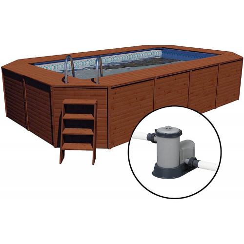 Piscina Madera Panelada K2O 655x390x124 cm Depuradora de Cartucho de 5.678 L/ H con Escalera