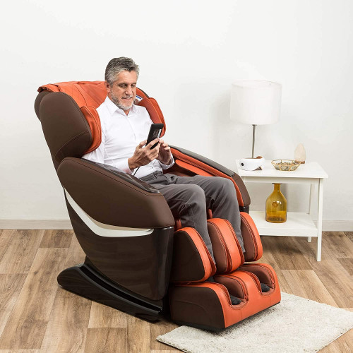 KENSHO® Sillón de Masaje Naranja Presoterapia con Aire, Reflexoterapia de pies, Termoterapia de Espalda, Gravedad y Espacio “Cero”, Sonido Envolvente 3D, Bluetooth