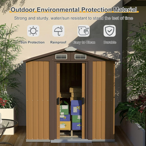 - 【Cobertizo de almacenamiento multifuncional para exteriores】El cobertizo de metal se puede utilizar para muchos propósitos. La gran capacidad es perfecta para exteriores, como el patio trasero, el jardín, el patio, el césped para almacenar sus suministros de jardinería y paisajismo como cortadoras de césped, herramientas eléctricas o bicicletas y otros artículos. También se puede usar como una casa para mascotas, las mascotas pueden obtener suficiente aire y mantenerse calientes incluso con mal
