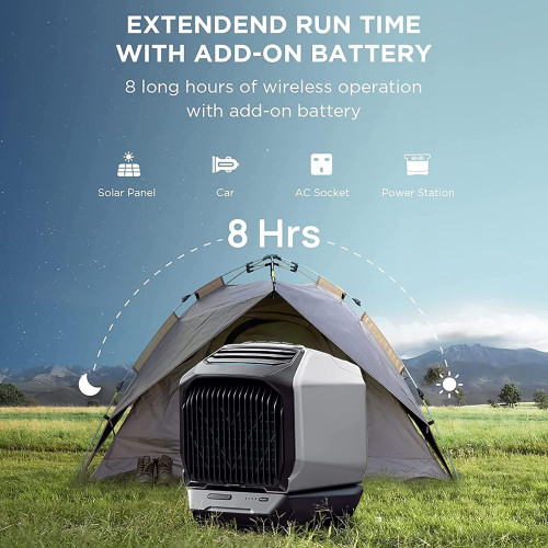 - Autonomía extendida: es un 28 % más eficiente que otras centrales eléctricas portátiles. También puede usar cualquier estación de energía portátil con una potencia de entrada de 820w para cargar su enfriador de aire