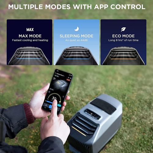 - Comodidad Silenciosa Y Duradera: Ejecute Silenciosamente (44 Db) En Modo De Suspensión Para Una Siesta Relajante. Con múltiples modos y control de aplicaciones, brinda comodidad más duradera en su tienda de campaña, vehículo recreativo u hogar