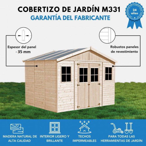 - TECHOS IMPERMEABLES. Gracias a su durable fieltro de techo, tu bodega de jardín proporciona protección de los elementos, manteniendo tus pertenencias secas. Para extra seguridad, viene completo con un perno de bloqueo de puerta. Revestimiento de madera de abeto y pino de alta calidad traslapado con paneles de 35mm de espesor.