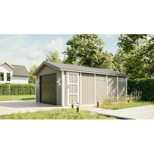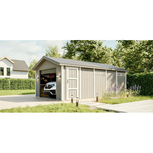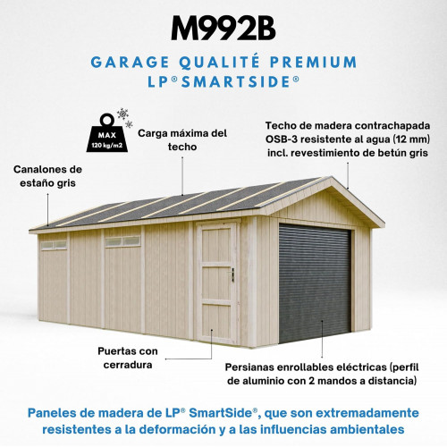 Garaje 21 m²- L378 x L648 cm - Garaje para Coches, Motos, Bicicletas, máquinas de jardinería - Construcción con Paneles LP Smartside - Cobertizo de jardín Timbela M992B