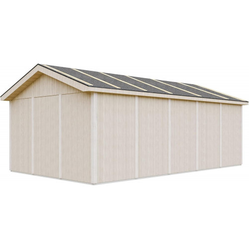 • Tenga en cuenta: Los paneles LP SmartSide requieren pintura después de la instalación. El techo bituminoso está diseñado para una protección temporal; recomendamos una cubierta adicional de tejas bituminosas para una mayor durabilidad. La entrega se realiza con camiones de gran envergadura.