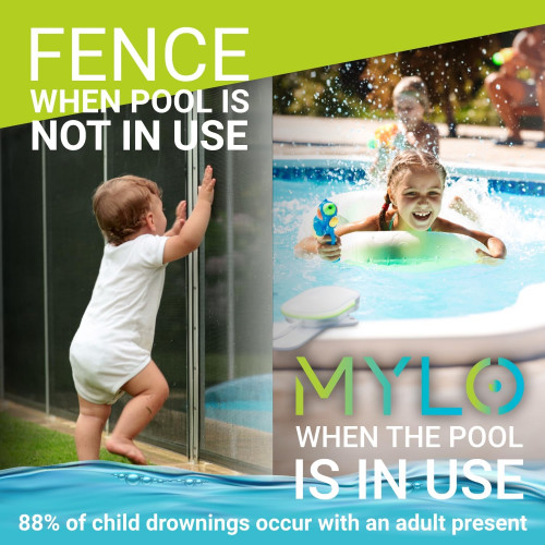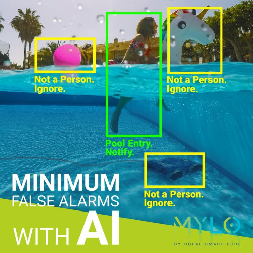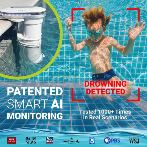 MYLO Alarma inteligente de piscina con IA – Cámara dual – Sistema de monitor de ahogamiento subacuático – Alarmas de piscina para piscinas enterradas y piscinas sobre el suelo – Guardia de seguridad.