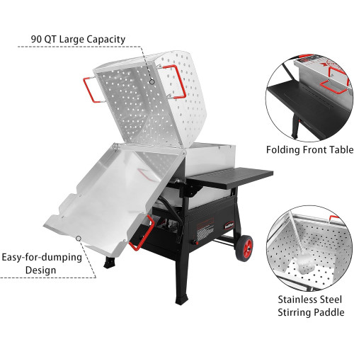 Creole Feast CFB1001A - Caldera de cangrejo de río de 90 cuartos de galón, cocina de gas propano para exteriores con soporte de montaje de cilindro plegable y paleta de agitación para la temporada de