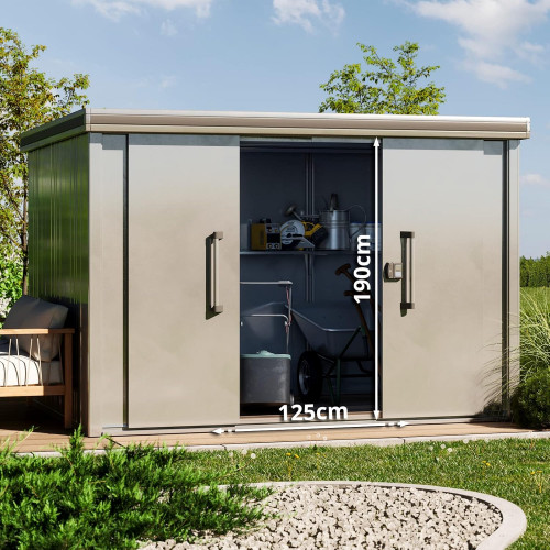 - ALMACENAMIENTO EN EL JARDÍN: Nuestras casetas de jardín resistentes a la intemperie ofrecen una solución de almacenamiento segura en tu jardín. Ya sea como cobertizo para herramientas o garaje para bicicletas. Nuestra caseta metálica de jardín es ideal para exteriores todo el año.
