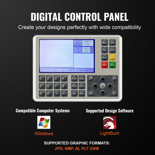 - El panel de visualización digital intuitivo y la interfaz fácil de usar hacen que sea fácil operar esta máquina de grabado láser. El tubo láser efr, combinado con un motor de 57 pasos de alta calidad y una guía lineal, ofrece un movimiento estable y preciso para mejorar su experiencia general de talla.