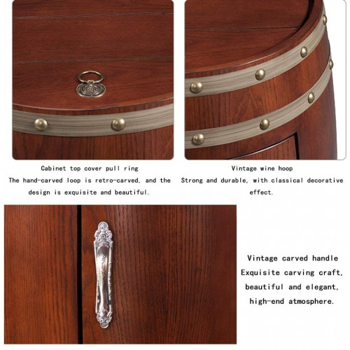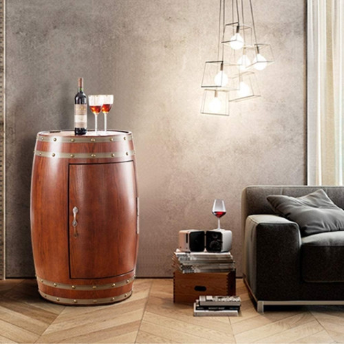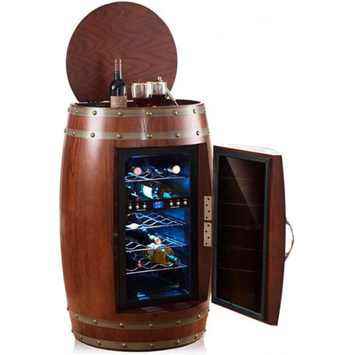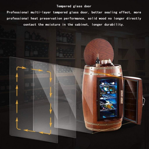 Bodega Independiente, Vitrina Vintage Con Barril De Vino, Barra De Hielo Integrada Con Temperatura Ajustable, Pantalla Táctil Digital, Puerta De Vidrio Doble A Prueba De Rayos Uv,Brown-65*65*96cm.