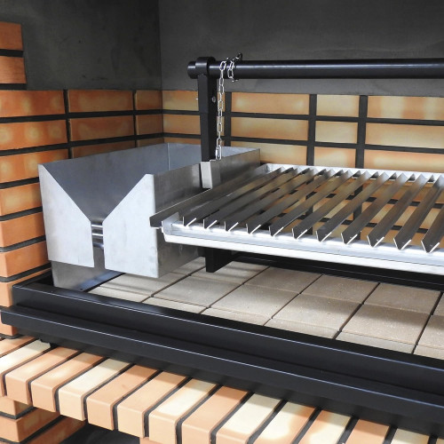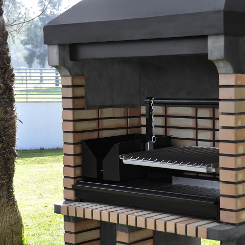 •  Parrilla estilo argentino en acero inoxidable 304 (65x50 cm): Con depósito de grasa, ideal para cocinar leña o carbón, diseñada para hasta 15 personas.