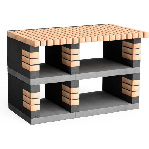 MOVELAR - Barbacoa de Obra Prefabricada de Leña y Carbón Modelo Pack 2 Pan American Orange (Ladrillo Naranja, Gris - Cocina de Exterior para Jardín o Patio)