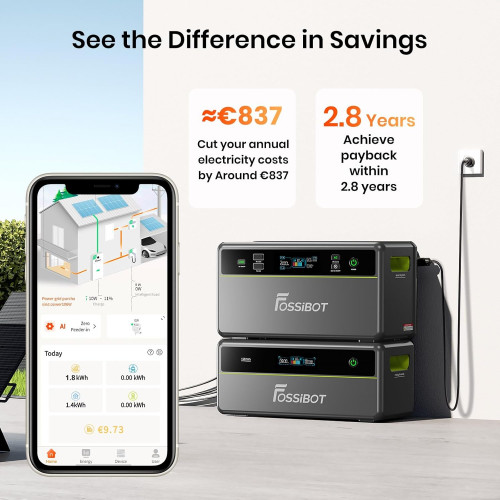 - Volver a Inversión Rápida: Genere hasta 2092 kWh/año, ahorrando alrededor de 837€ en sus facturas. El retorno de la inversión se realiza en solo 2,8 años gracias a la optimización inteligente. Realice un seguimiento en tiempo real de su producción y consumo para apuntar al cero desperdicio energético.
