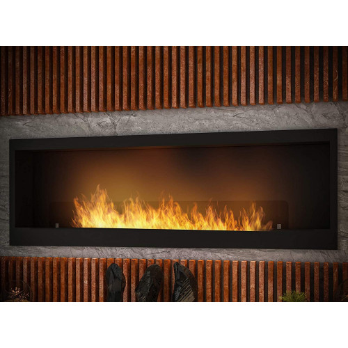 Chimenea de bioetanol de diseño para empotrar en la pared con cristal protector incluido, marco negro semimate de acero inoxidable, quemador de 3 litros (INSIDE1500)