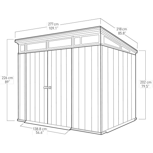 Marca Keter Color Gris Material Duotech Dimensiones del producto: largo x ancho x alto 2.78 x 2.18 x 2.26 metros Peso del producto 191.5 Kilogramos Material de la base Madera Requiere montaje Sí