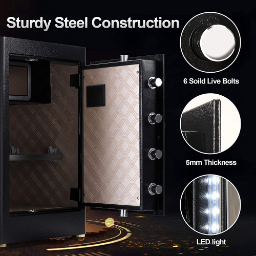 - Seguro y resistente: Tigerking de alta seguridad digital está hecha de material de acero grueso muy duradero para una protección duradera y fiable. Equipo con 3 lados, 6 pernos de bloqueo en vivo ofrecen protección física contra la entrada forzada.