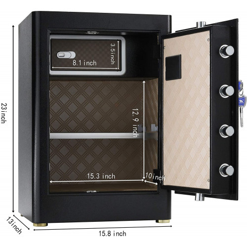 - Ideal para el hogar, hotel, oficina: la caja fuerte con un nivel extremadamente alto de función antirrobo, el armario bien diseñado y los colores clásicos coinciden perfectamente con el estilo de decoración de tu hogar, hotel u oficina, convirtiéndose en uno de tus elegantes muebles.