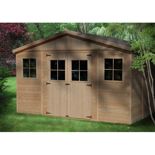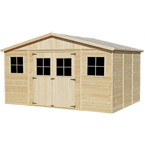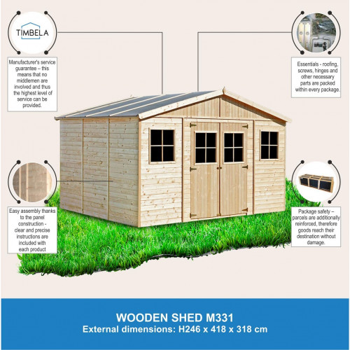 TIMBELA Casetas de Jardin M331 - Casa de Madera para Jardin - Caseta Jardin 418x320cm/12m2 - Cobertizo Jardin Exterior Natural - Taller de Jardín - Bicicleta, Almacenamiento de Herramientas