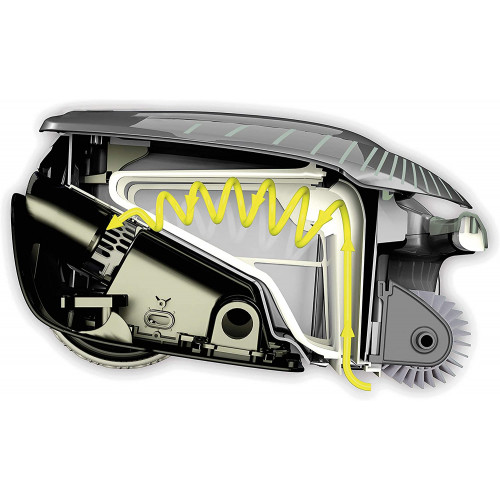 - Aspiración ciclónica patentada para una limpieza potente y constante; eliminación eficaz de la suciedad gracias a los cepillos de láminas