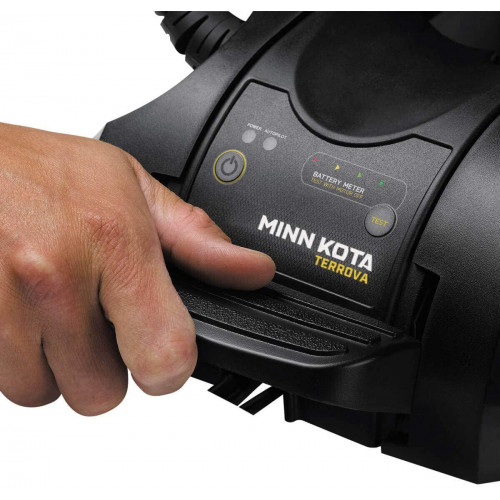 - El Minn Kota Terrova cuenta con un sistema de rampas fáciles de desplegar que deslizan sin esfuerzo el motor de arrastre en el agua, además de un diseño de elevación con resorte para un fácil almacenamiento.